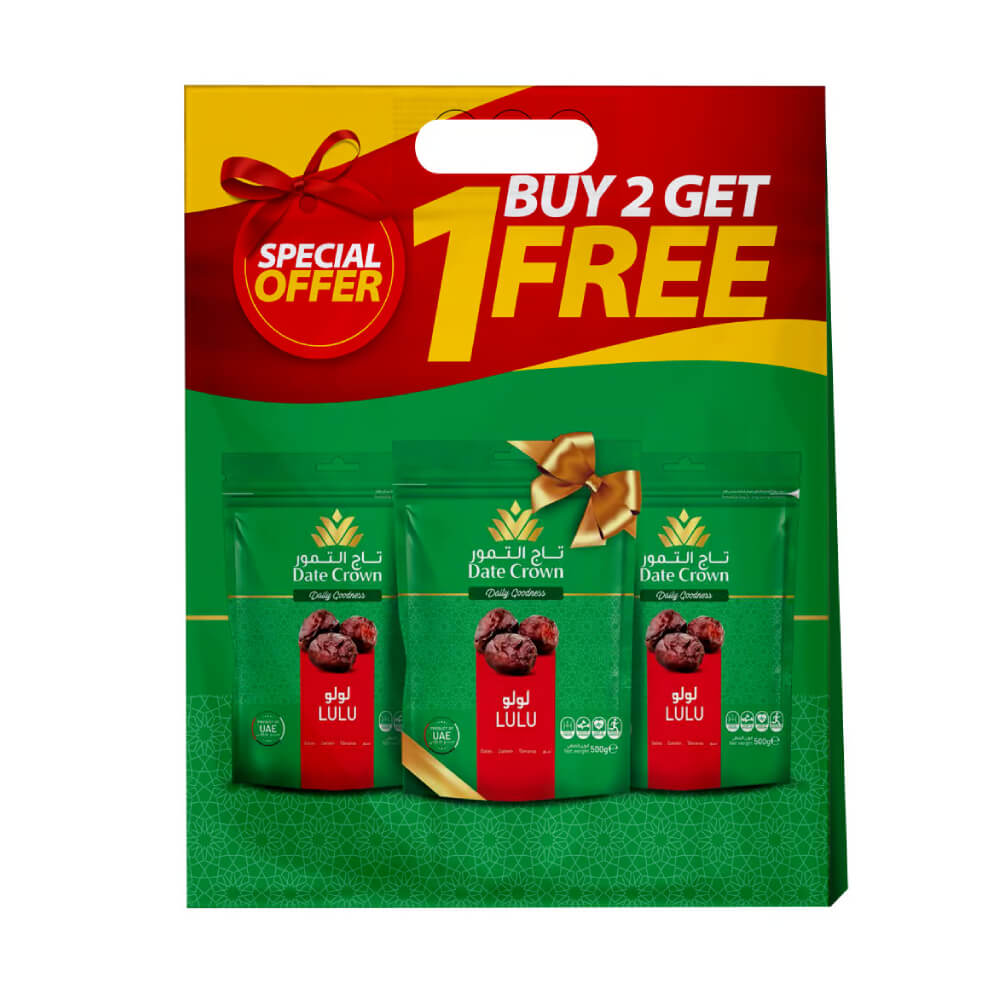 Prepare to welcome the holy month of Ramadan 2024 in the UAE with Date Crown Lulu Dates 3x500Gm, brought to you by The Fresh Market. These premium dates, carefully packaged, are the perfect addition to your Ramadan table, available at Vegetable Souk Dubai.