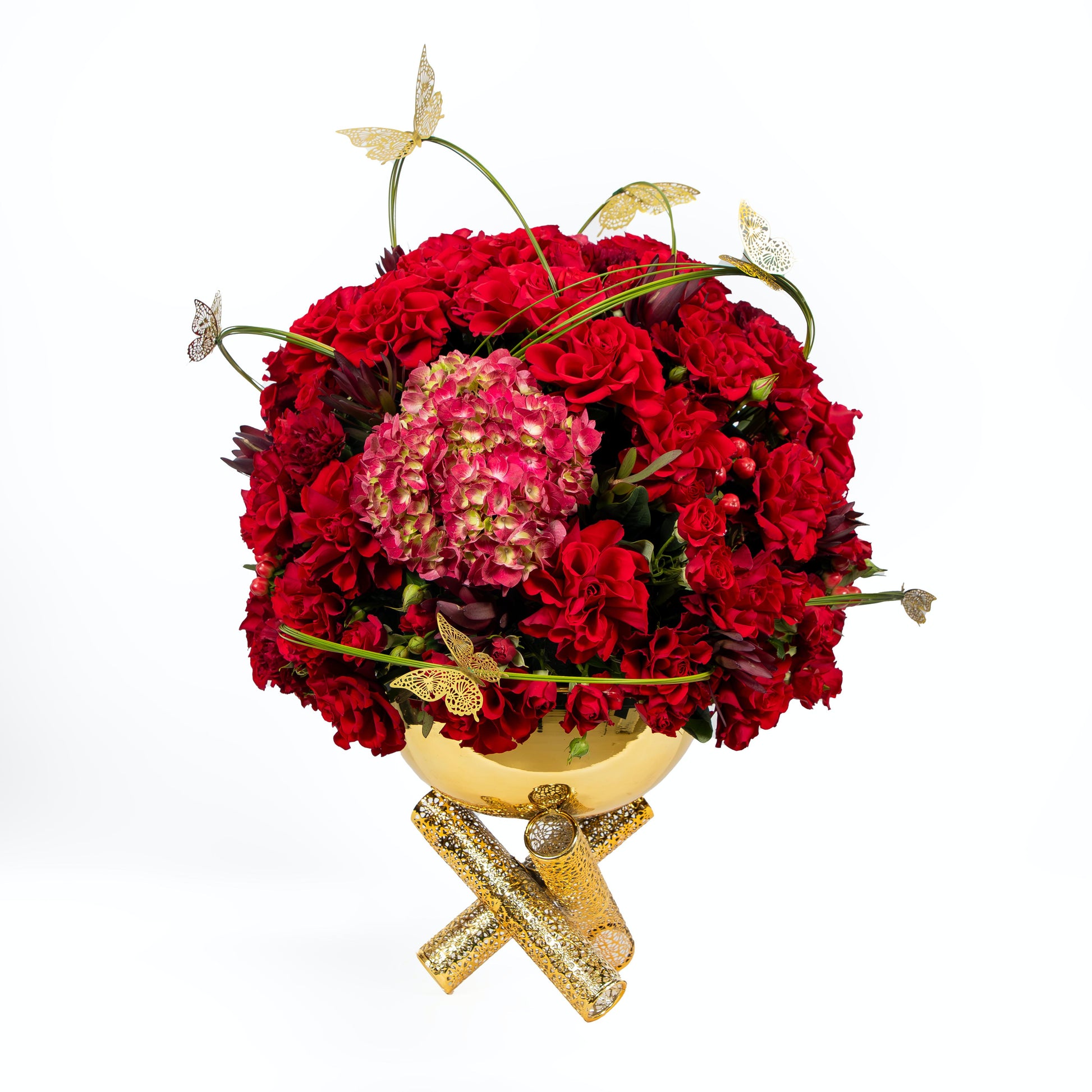 Ambrosia Eternal Flame Flower Arrangement, unforgettable moments of radiance from The Fresh Market, where flowers shine in a golden vase reflecting luxury and elegance. Ambrosia Eternal Flame Flower Arrangement is a floral arrangement that embodies the timeless beauty of roses framed in gold, offering a unique visual and emotional experience.