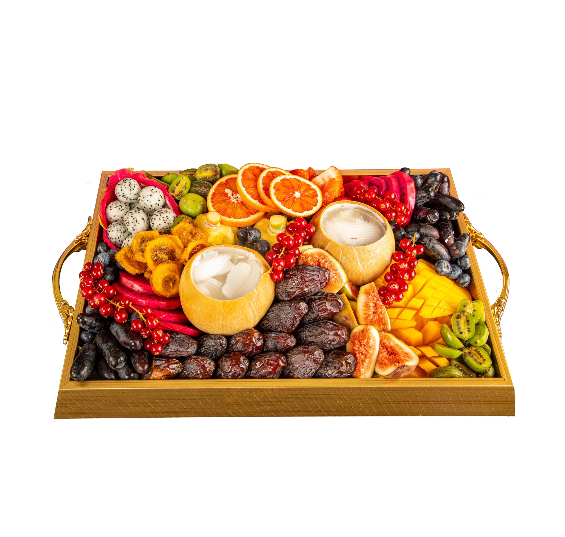 Fresh Coconut: Delight in fresh and delicious coconut pieces that add a tropical touch to the platter.