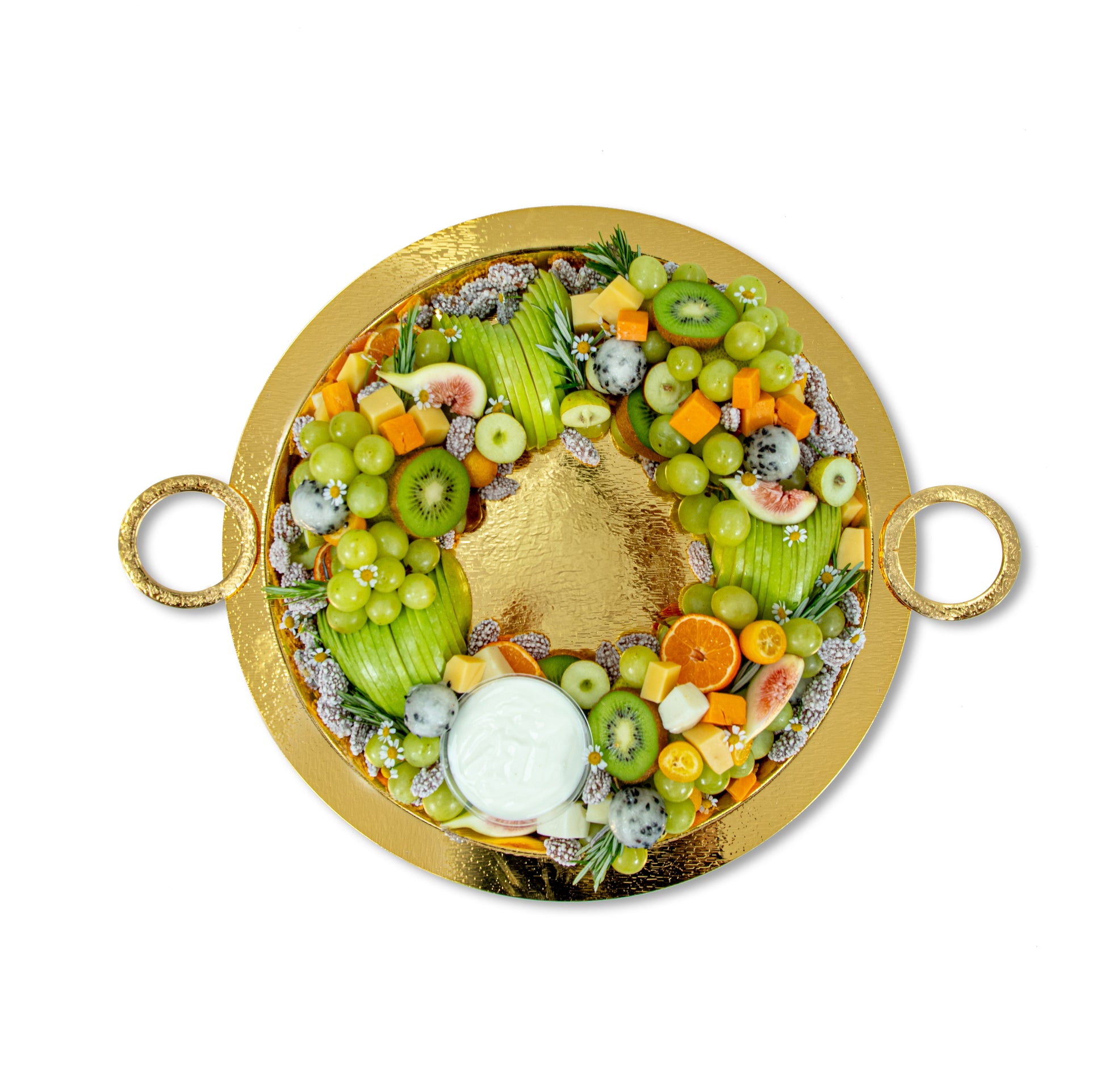 Ambrosia Summer Fruits Wreath Fruit Tray, an artistic masterpiece presented elegantly by The Fresh Market, is a fruit platter that offers a rich experience of natural flavors and beautiful presentation, making it more than just a fruit platter; it's a message of love wrapped in beauty and elegance.